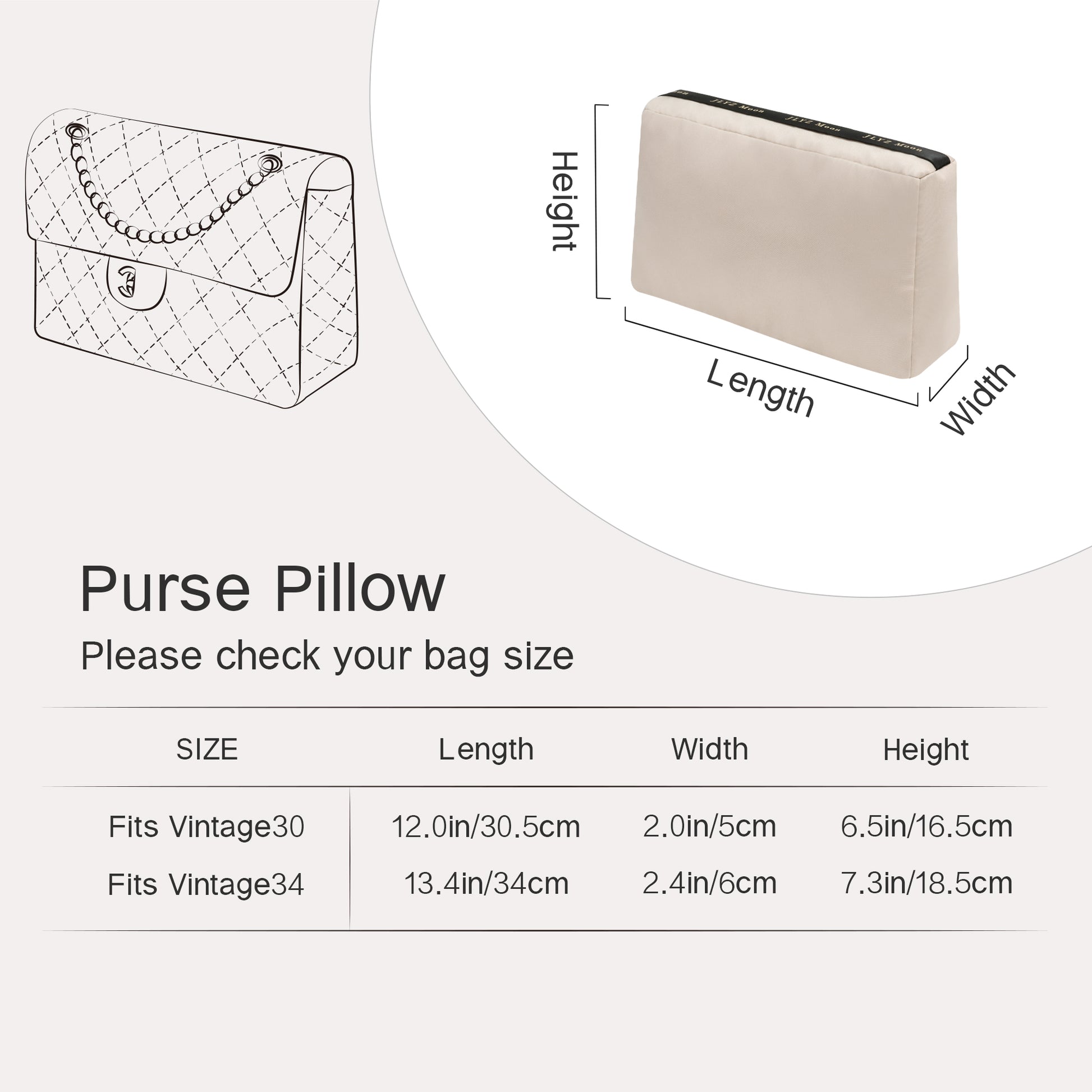 - Purchase Notice: We only sell bag pillows, not handbags. Please measure the interior width, depth, and height of your handbag before purchasing, then refer to size chart to make your purchase