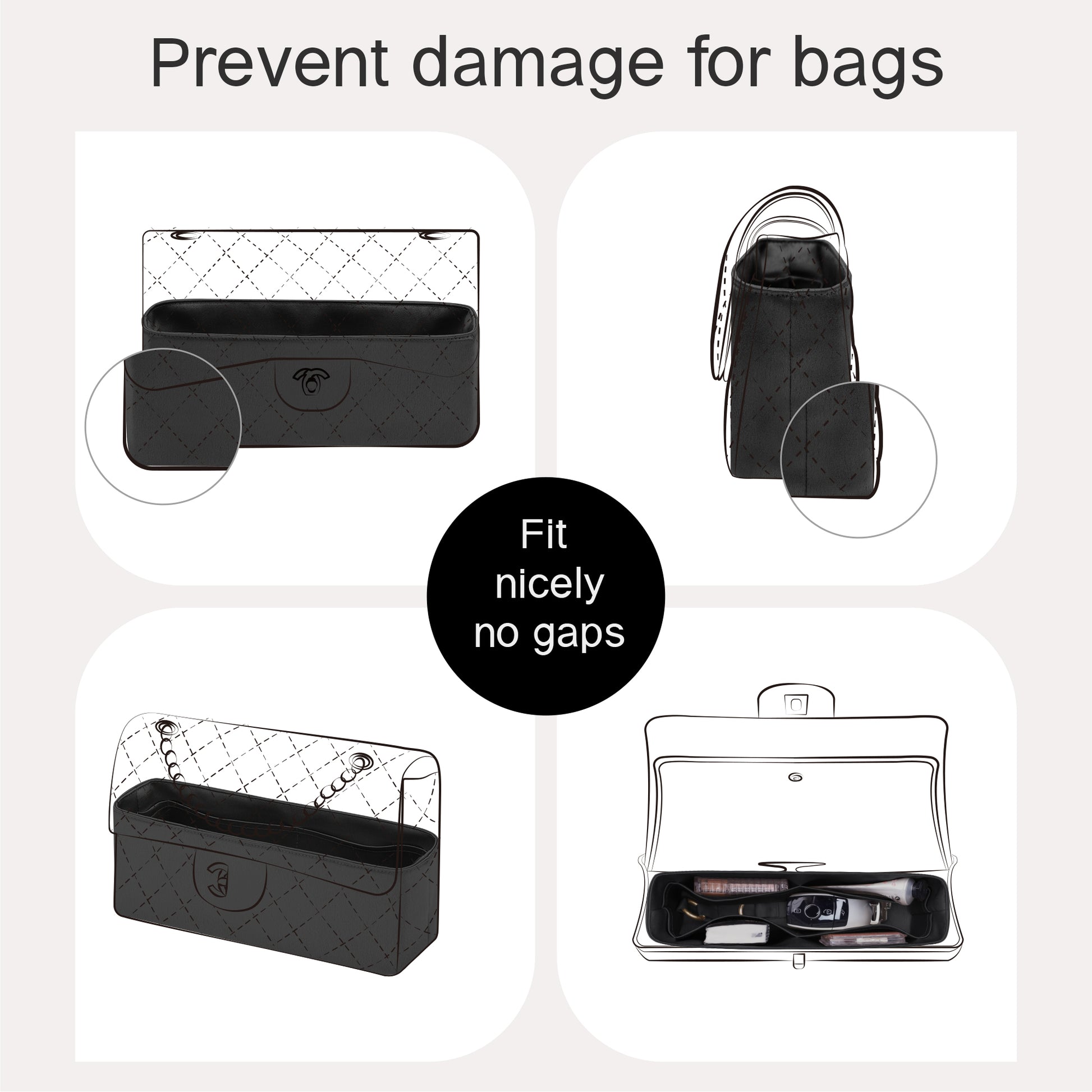 - Essential Protection for Your Investment: Shield your luxury bag's delicate lining from scratches and dents caused by keys, cosmetics, and hard items. Our organizer acts as a protective barrier, preventing irreversible damage and extending your bag's pristine condition.
